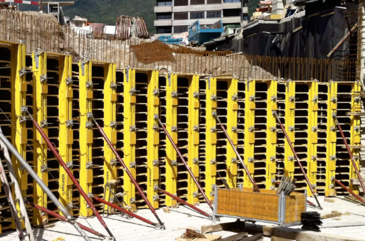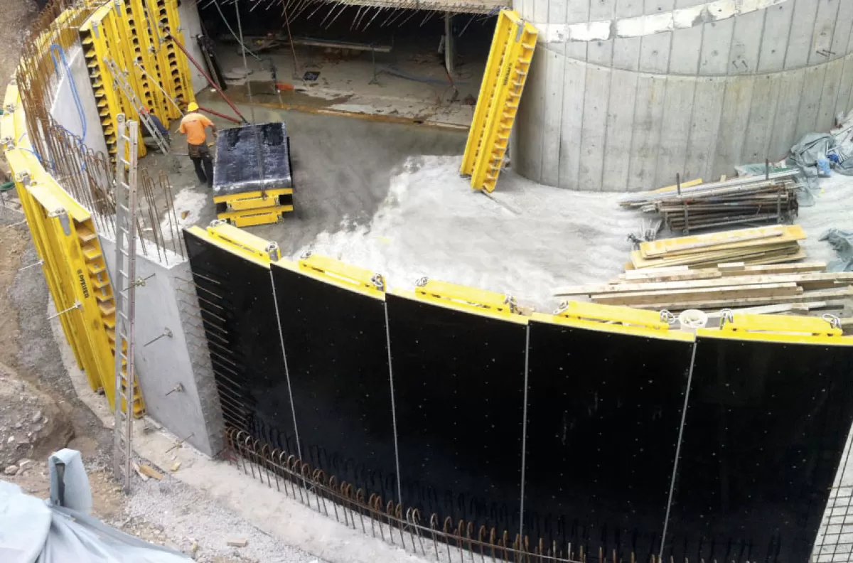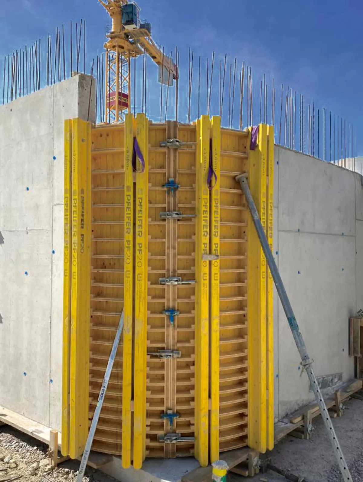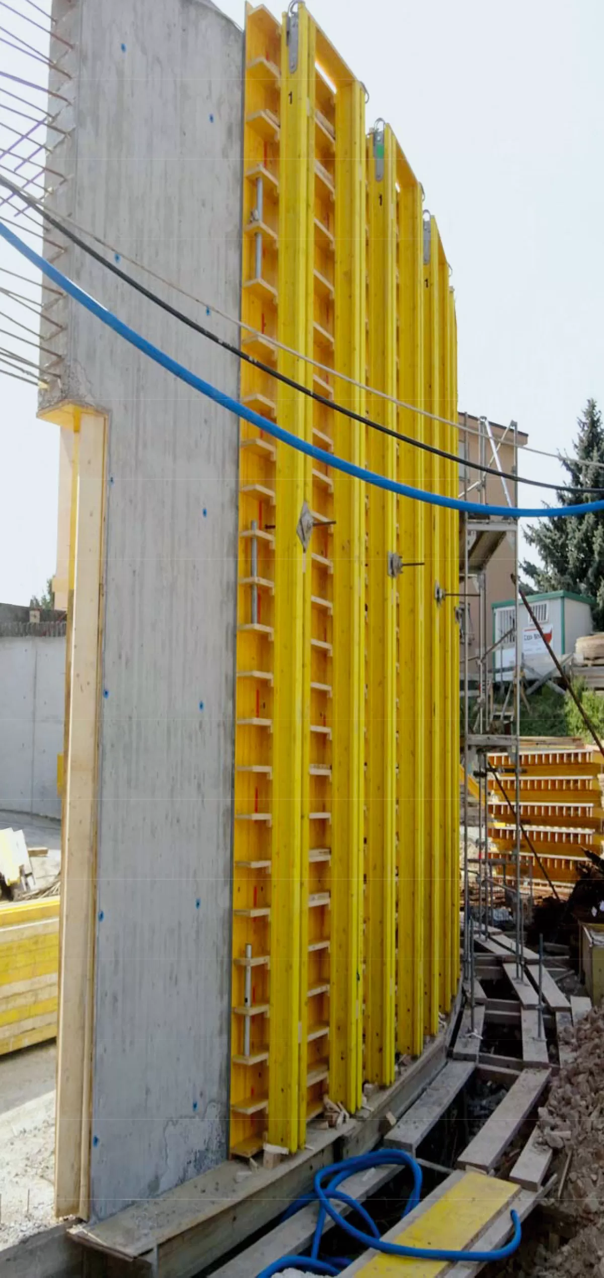 Die H20 Knaggenschalung mit doppelten H20-Trägern und horizontalen Knaggen ermöglicht individuelle Ausführungen von Wänden und Höhen bis 5,50 m.