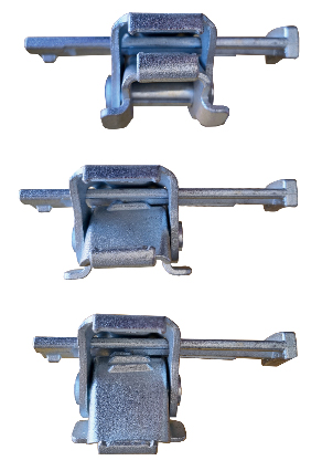 Über die Stellung des Arretierungselements ist der Rahmen gleichzeitig für verschiedene Stützen verwendbar. Insgesamt sind 3 Stellungen möglich.